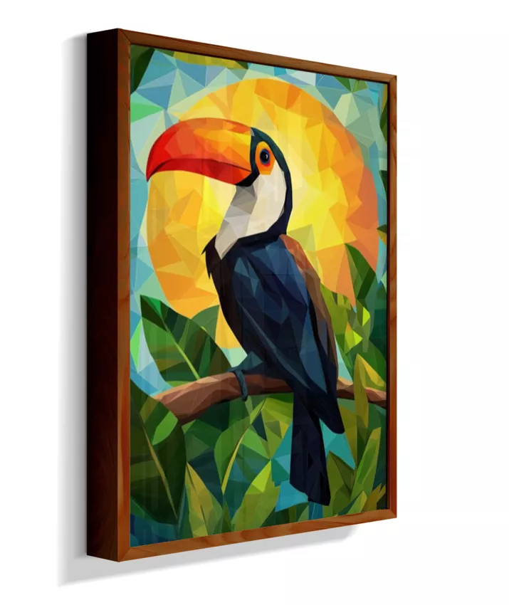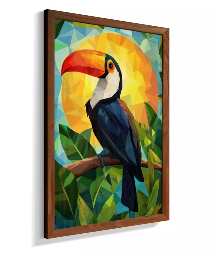 O tucano é engenharia evolutiva disfarçada de comédia visual. Aquele bico gigante? Termorregulador perfeito que dissipa calor com precisão. Silhueta única que toda criança reconhece como Brasil—o 'rosto' vivo da floresta tropical. Preto brilhante como noite amazônica, vermelho vibrante como coração vivo, amarelo como ouro solar que passa entre copas, verde como esperança que dispersa sementes. Frugívoro que arquiteta ecossistema silenciosamente—seu trabalho invisível é absolutamente crítico. Voador preciso apesar da desproporcionalidade, navega copas com elegância impossível. Cada cor fala de função, não apenas de beleza. Simplicidade visual, complexidade profunda. Geometria viva que dança entre folhas em perfeição.