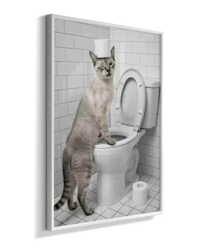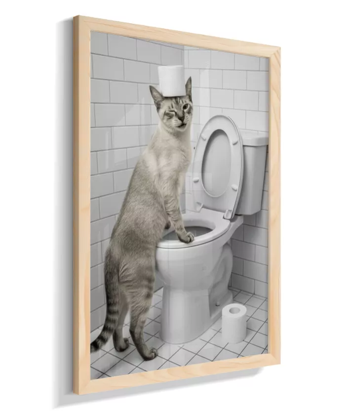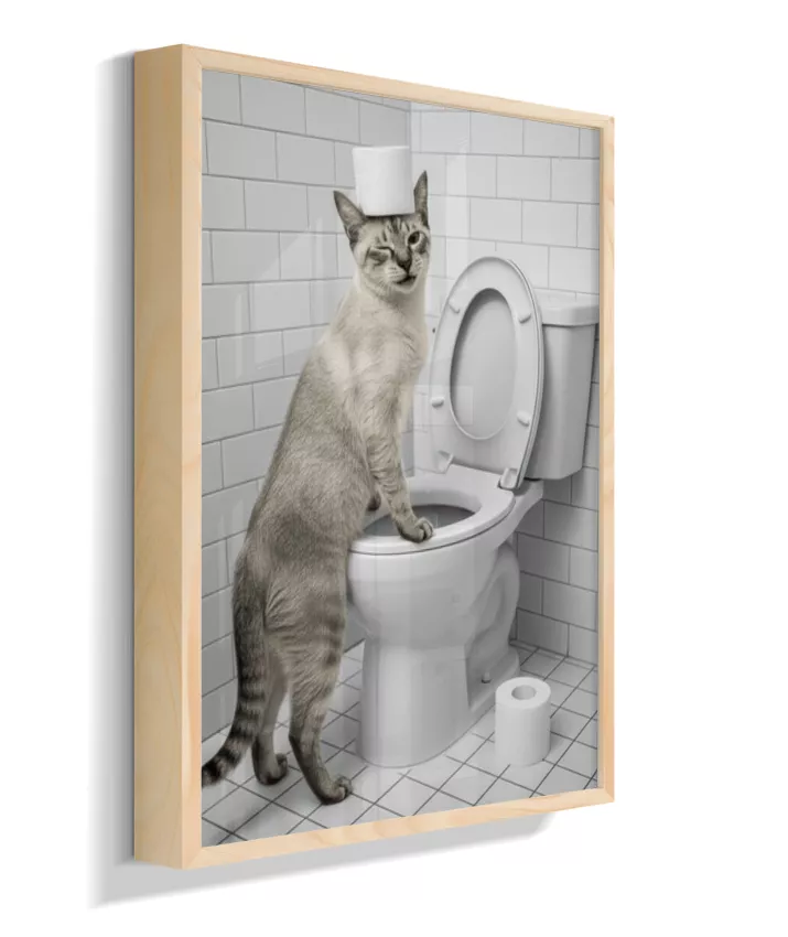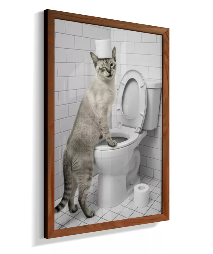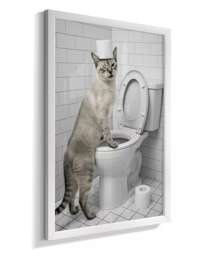 Algumas coisas não pedem explicação. Pedem distância. Com humor sutil e ironia silenciosa, esta imagem transforma um instante íntimo em uma cena inesperadamente elegante. O desconforto vira graça, e a privacidade vira personagem — criando um detalhe leve e inteligente para banheiros e lavabos que apreciam personalidade, discrição e bom design.