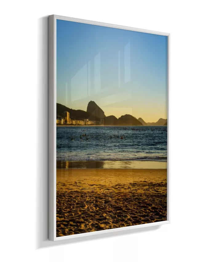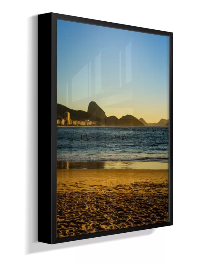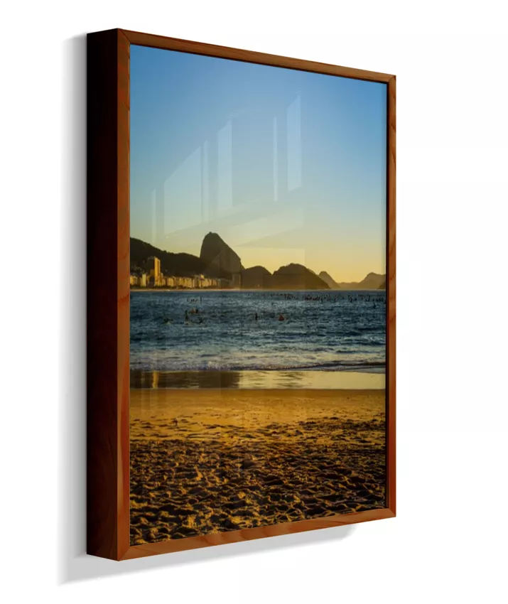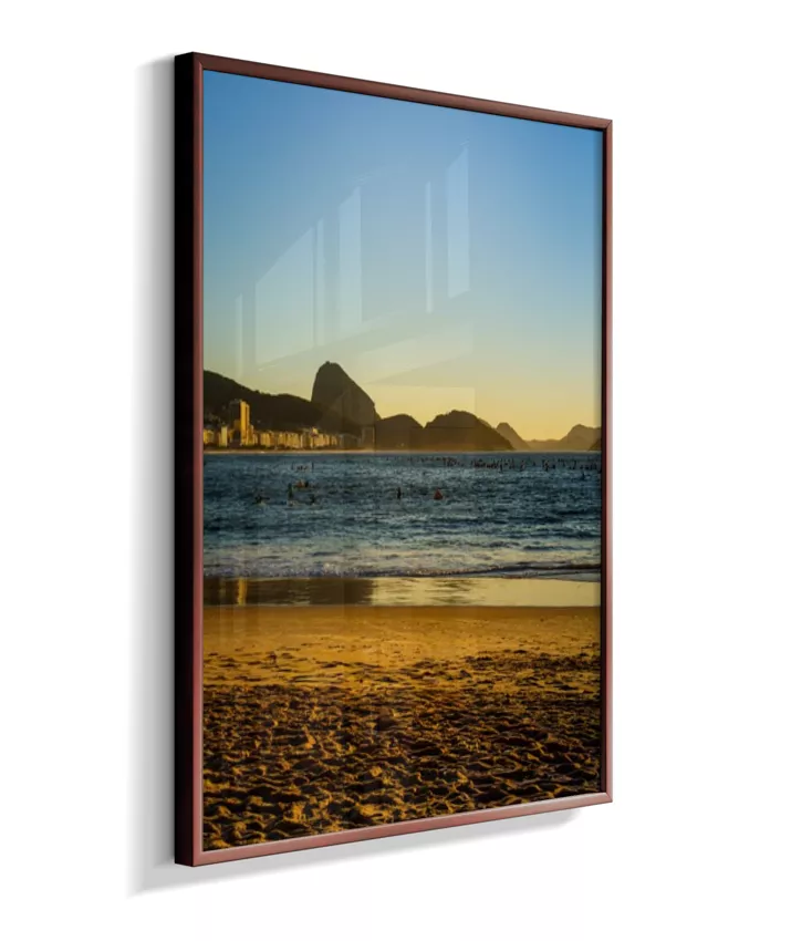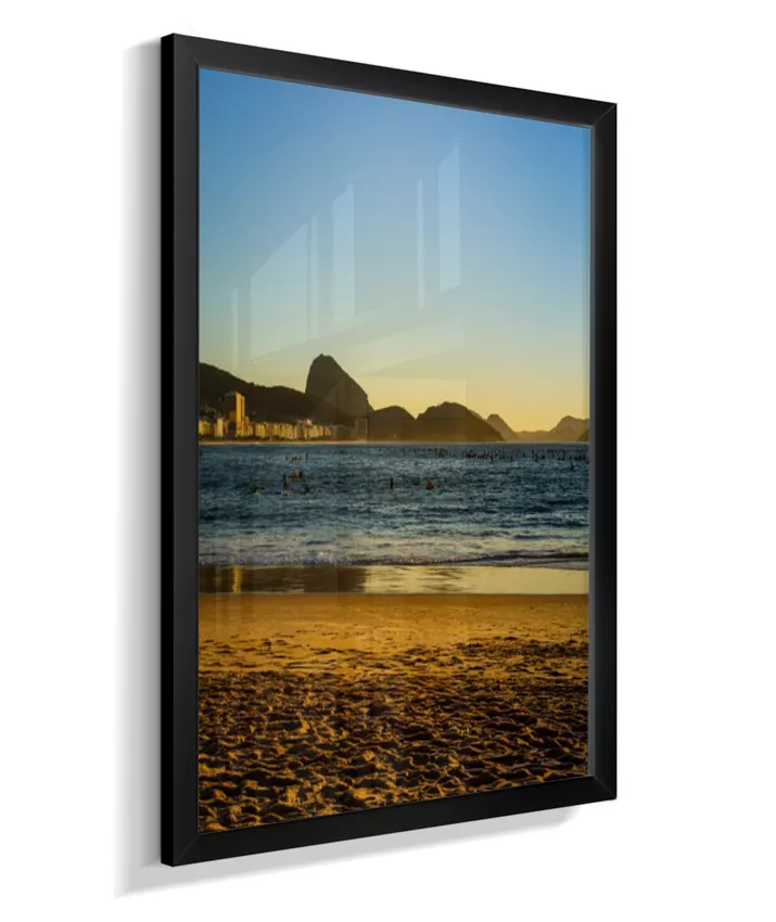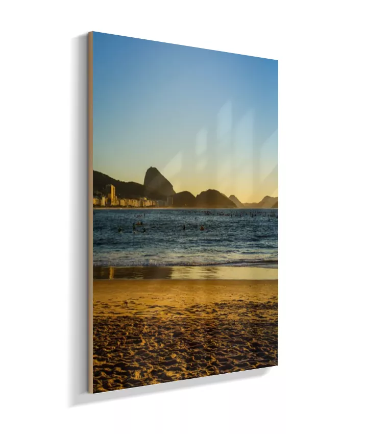 Quando o oceano ainda descansa em tons de ouro e a Pedra de Açúcar emerge como testemunha silenciosa do novo dia. Uma fotografia que captura aquele instante raro onde Copacabana acorda em paz, e a praia pertence apenas à luz e ao tempo. Um convite visual para quem busca presença autêntica na natureza.