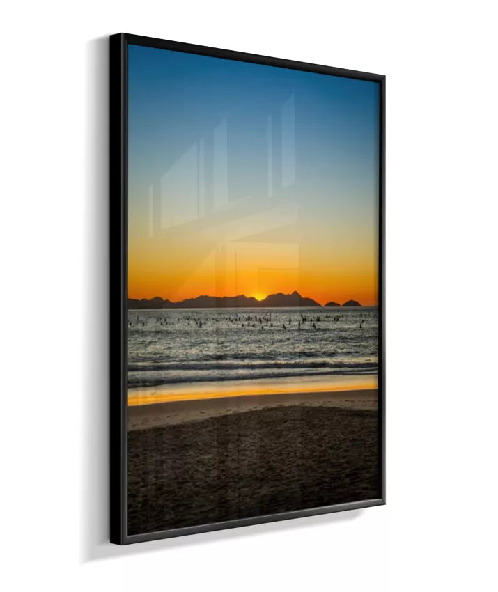 O horizonte do Posto 6 ao amanhecer é uma linha de claridade entre mundos. Fresta delicada onde céu e mar finalmente se entendem, e a praia testemunha o diálogo silencioso. Uma composição que fala sobre fronteiras, transições e a beleza da clareza. Para quem gosta de repouso contemplativo.