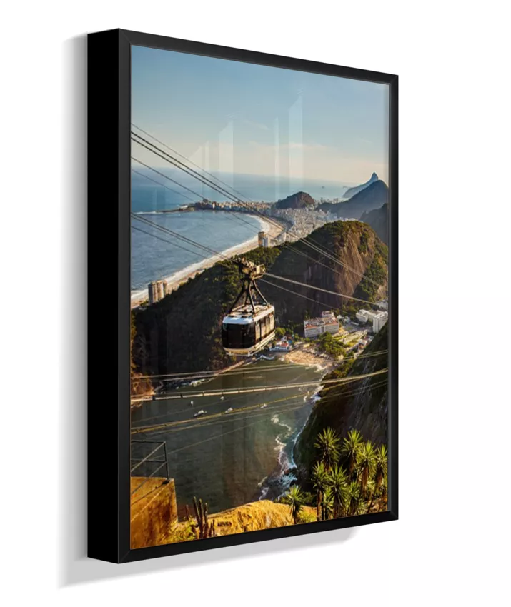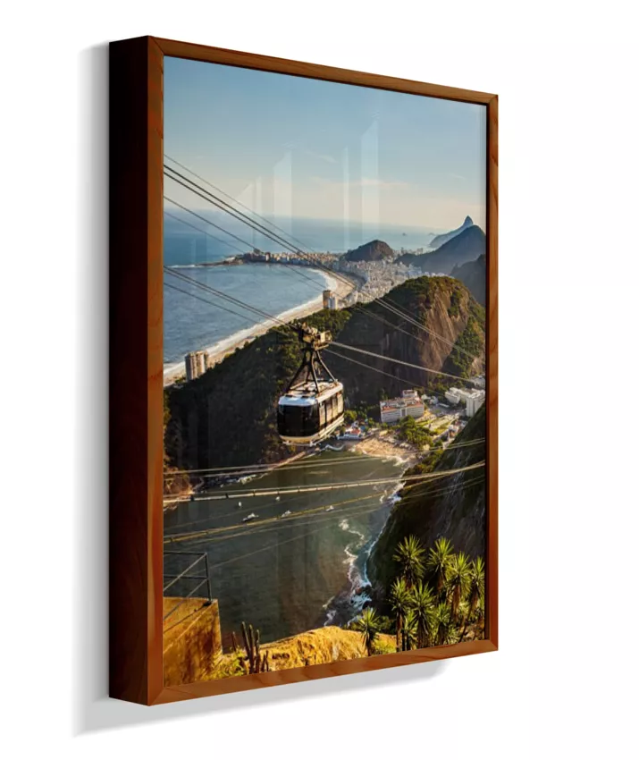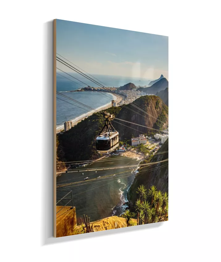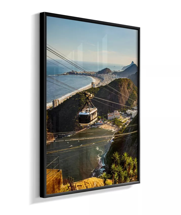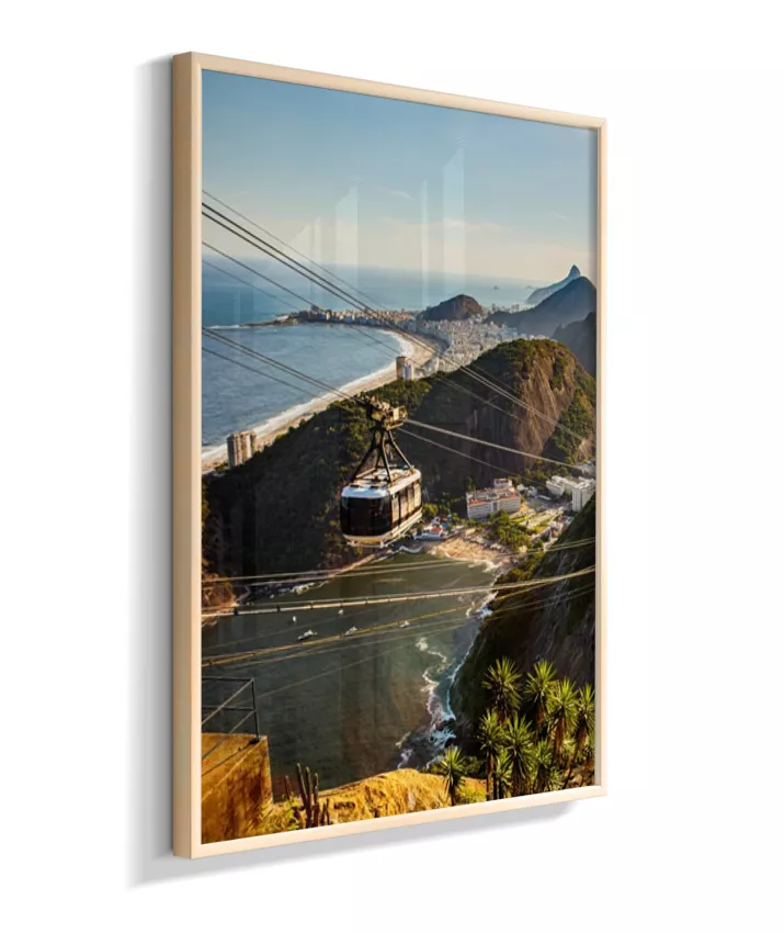 Este é o lado esquerdo do díptico “Pão de Açúcar ao Entardecer”, onde o bondinho conduz o olhar pela paisagem iluminada pela luz quente da tarde. A composição cria movimento e profundidade, funcionando tanto de forma individual quanto em conjunto com o lado direito, que completa a vista do Rio de Janeiro.
