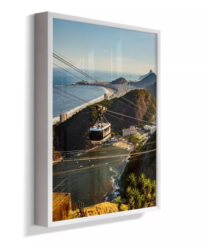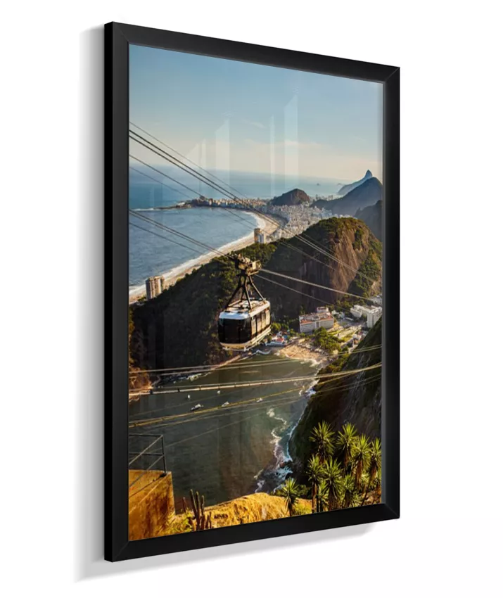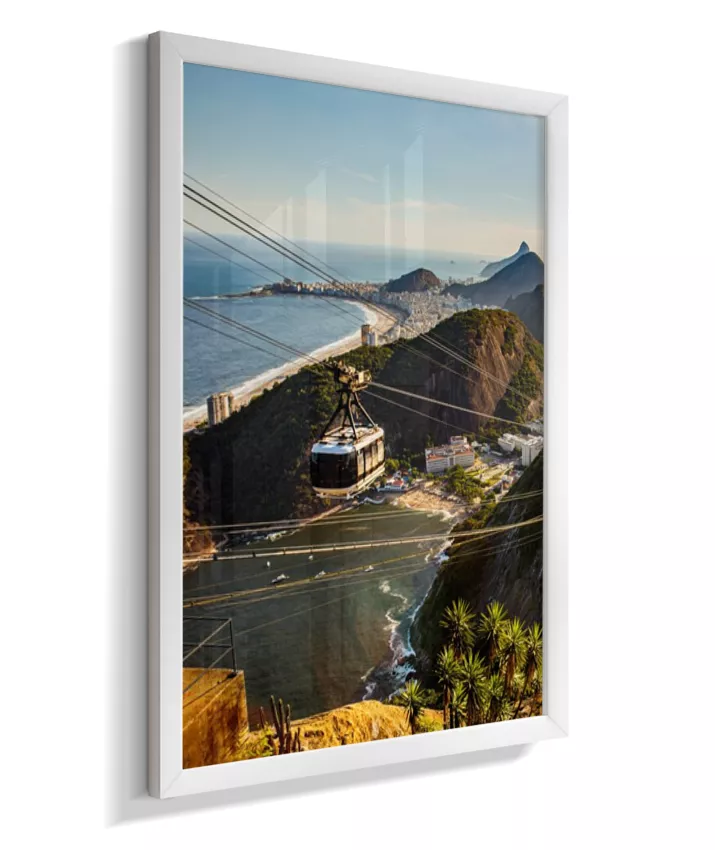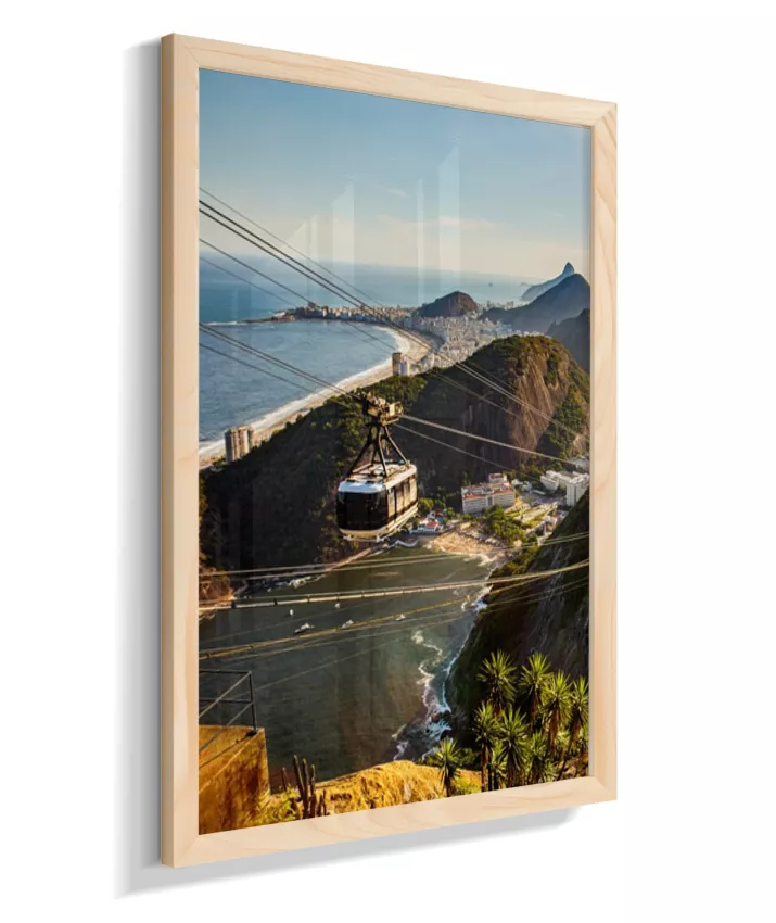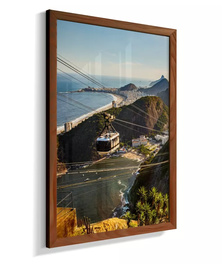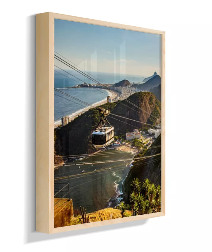 Este é o lado esquerdo do díptico “Pão de Açúcar ao Entardecer”, onde o bondinho conduz o olhar pela paisagem iluminada pela luz quente da tarde. A composição cria movimento e profundidade, funcionando tanto de forma individual quanto em conjunto com o lado direito, que completa a vista do Rio de Janeiro.